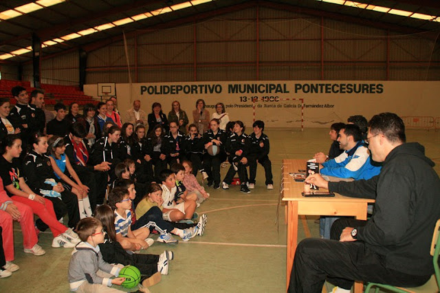 ANDR?S RODRÍGUEZ, BASE DEL BLUSENS MONBUS OBRADOIRO DE ACB, VISIT? A LOS CHICOS/AS DEL CB RIO ULLA