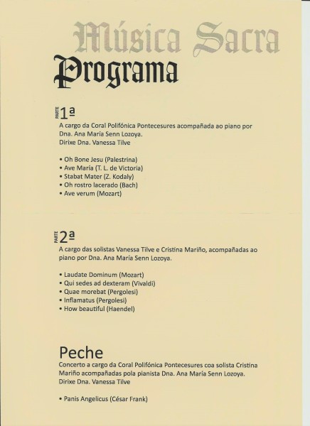 Será ás 19h na Igrexa Parroquial de Pontecesures coas actuacións de: